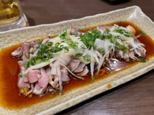 地鶏のサラダや日向本(ひむかほん)サバの刺身&唐揚げ、