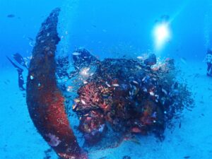 お魚たちの中心にゼロ戦がありました