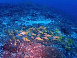 鮮やかな魚も多く、スカシテンジクダイやキンメモドキの群れ、