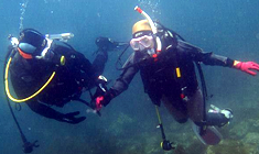 今度は、プール実習で学んだことを実際の海で行います。プール実習では味わえない可愛い魚達と遊びながらの実習です。海洋実習まで満足に終了すればダイバーの仲間入りです。(海洋実習は合計2日間行います。2日間連続でなくても大丈夫です。)